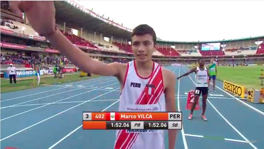 El arequipeño Marco Vilca (16) no logró clasificar a la final de los 800 metros planos del Mundial de Atletismo Sub-18 de Nairobi (Kenia), pero consiguió imponer un nuevo récord nacional de la categoría con 1m51s95. Quedó quinto en su serie de semifinal.